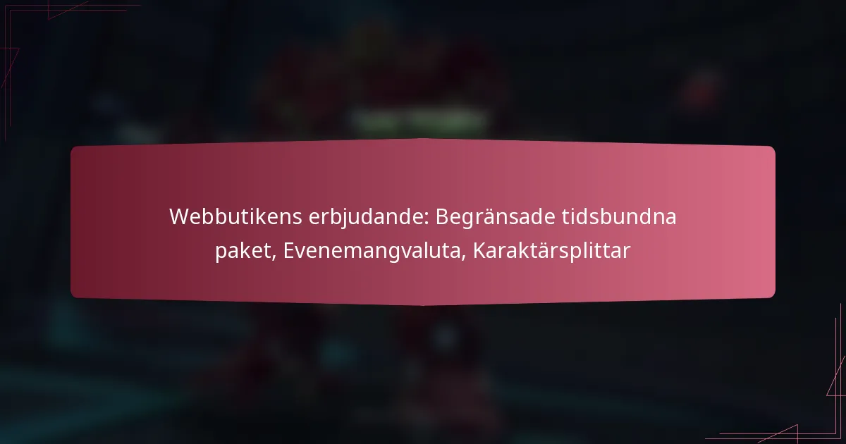 Webbutikens erbjudande: Begränsade tidsbundna paket, Evenemangvaluta, Karaktärsplittar