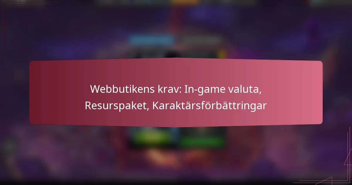 Webbutikens krav: In-game valuta, Resurspaket, Karaktärsförbättringar