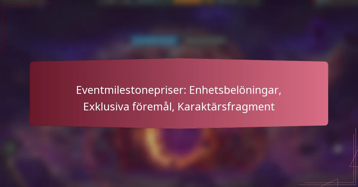 Eventmilestonepriser: Enhetsbelöningar, Exklusiva föremål, Karaktärsfragment