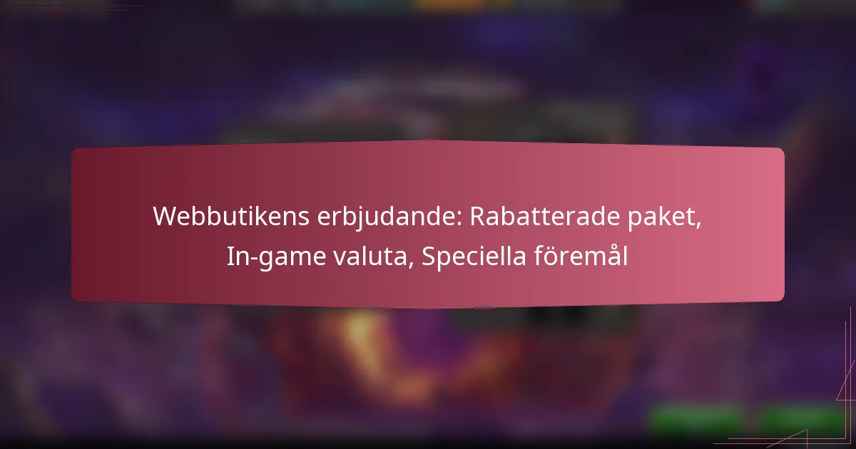 Webbutikens erbjudande: Rabatterade paket, In-game valuta, Speciella föremål